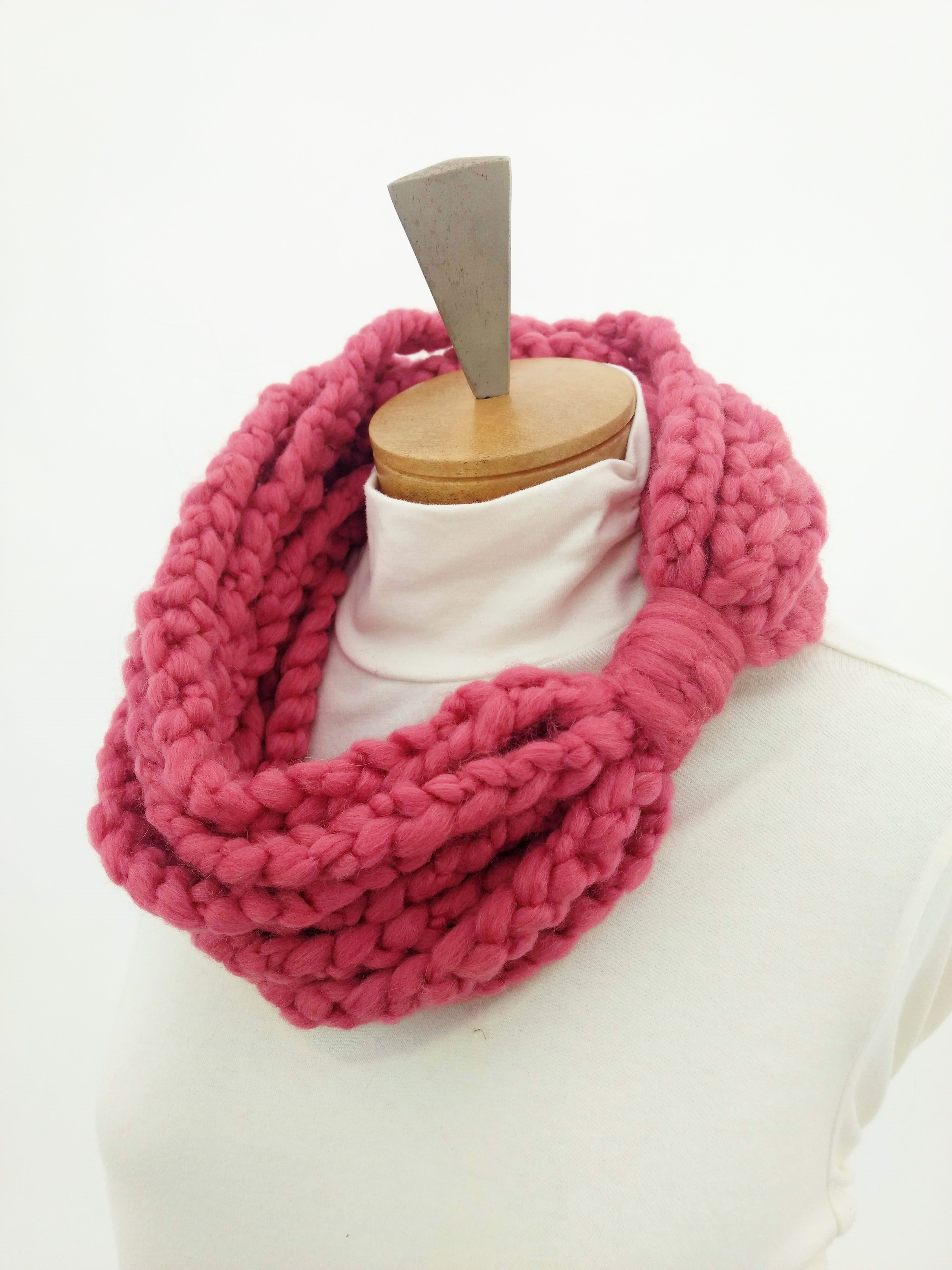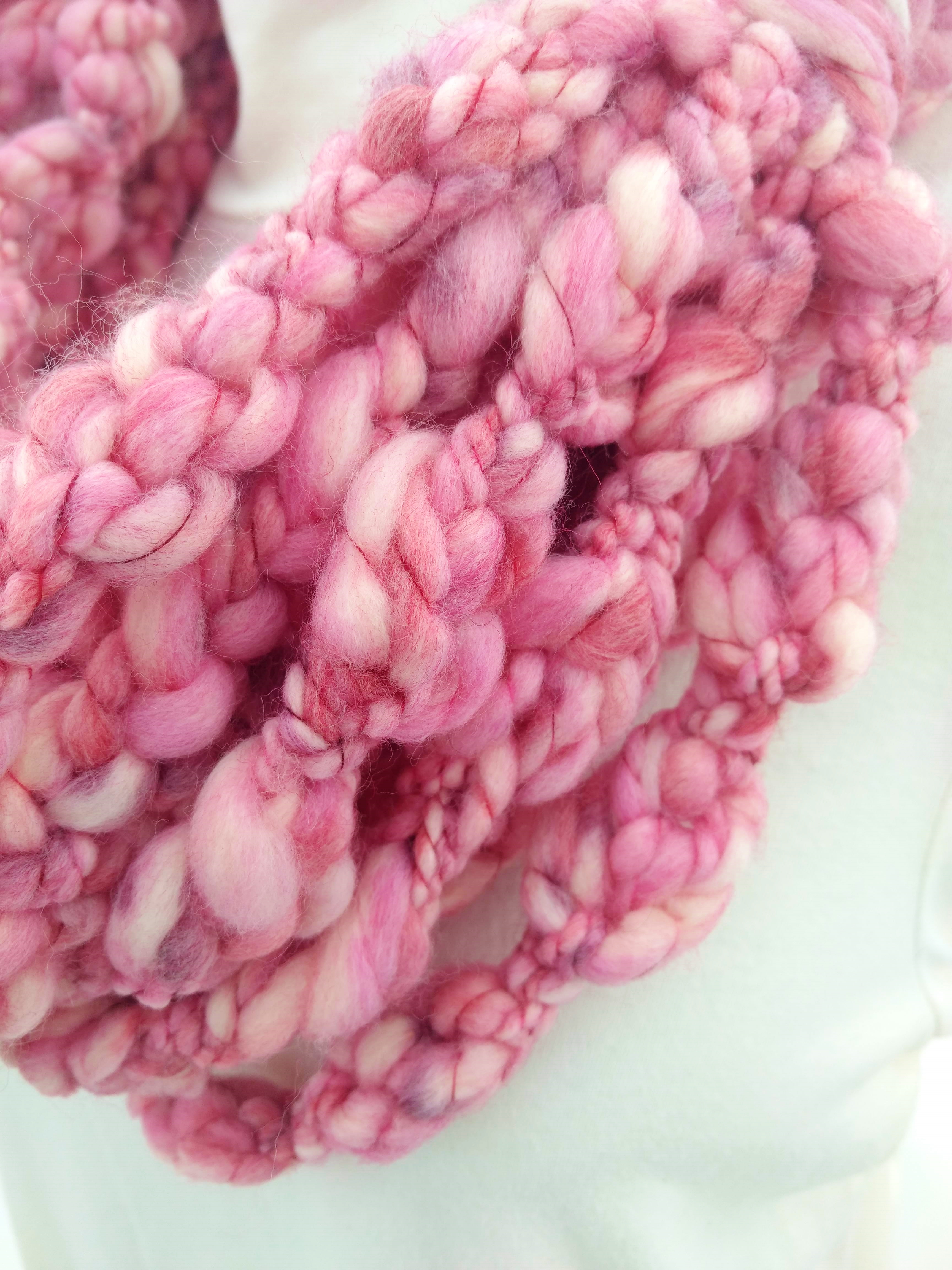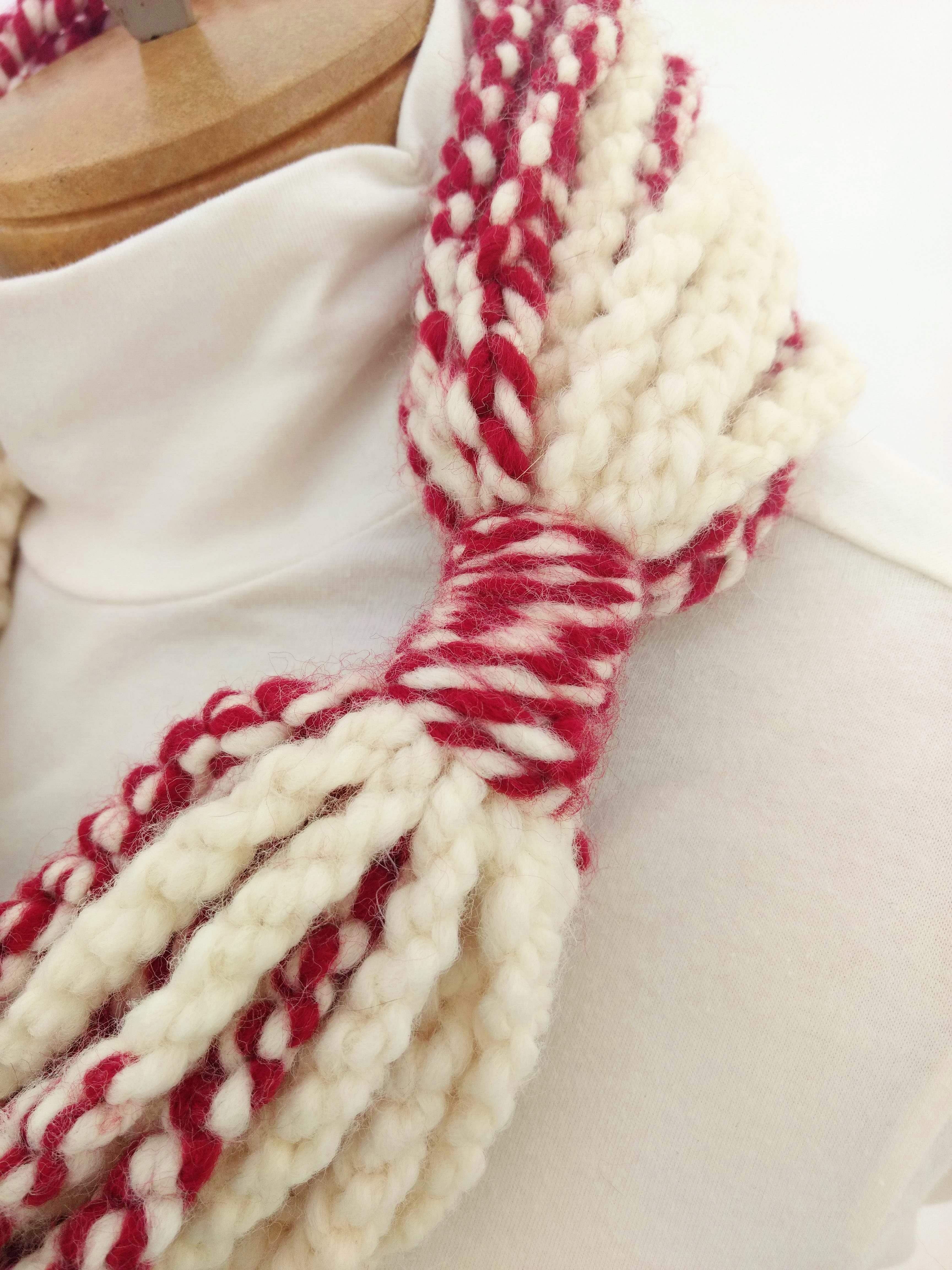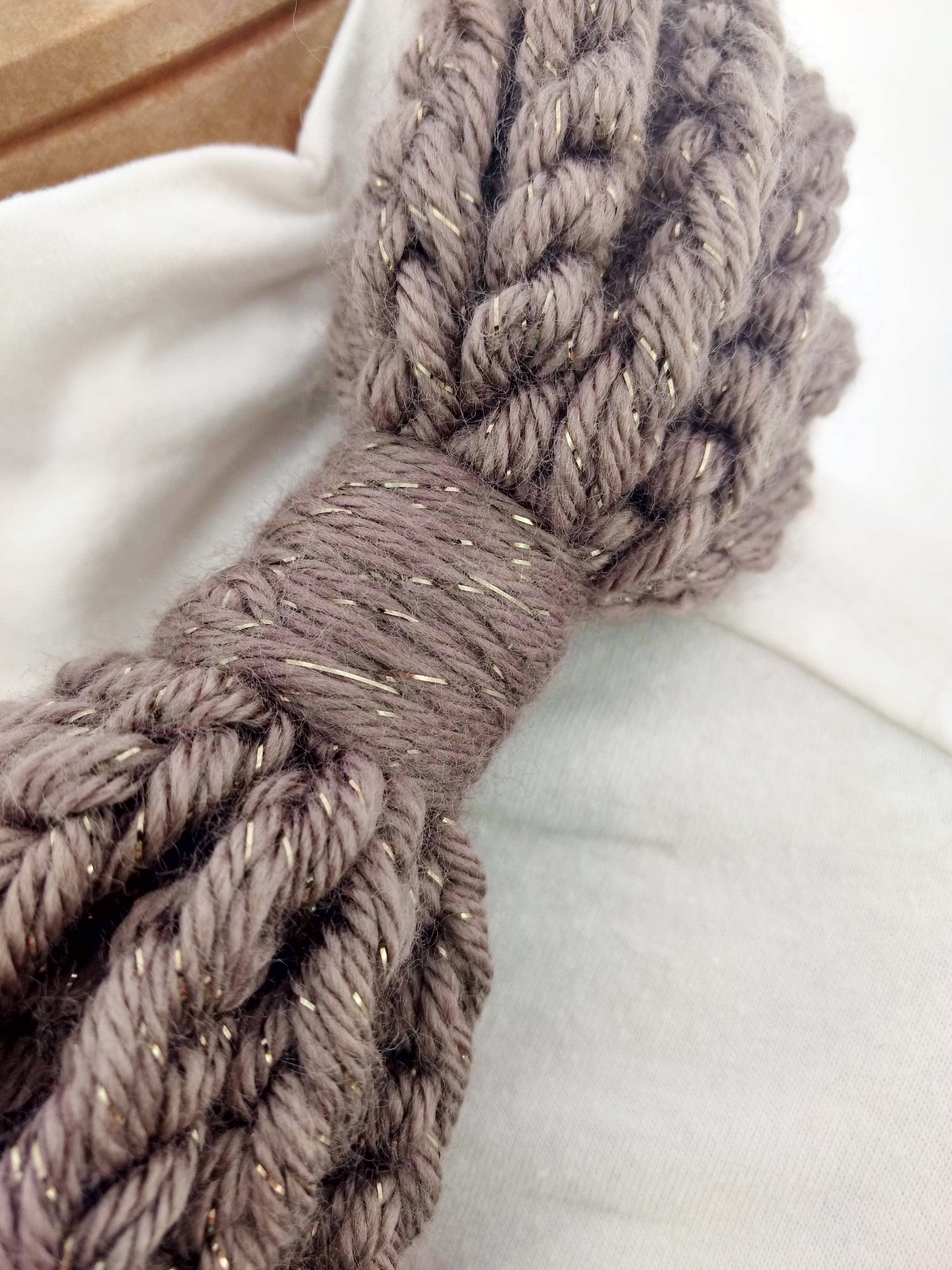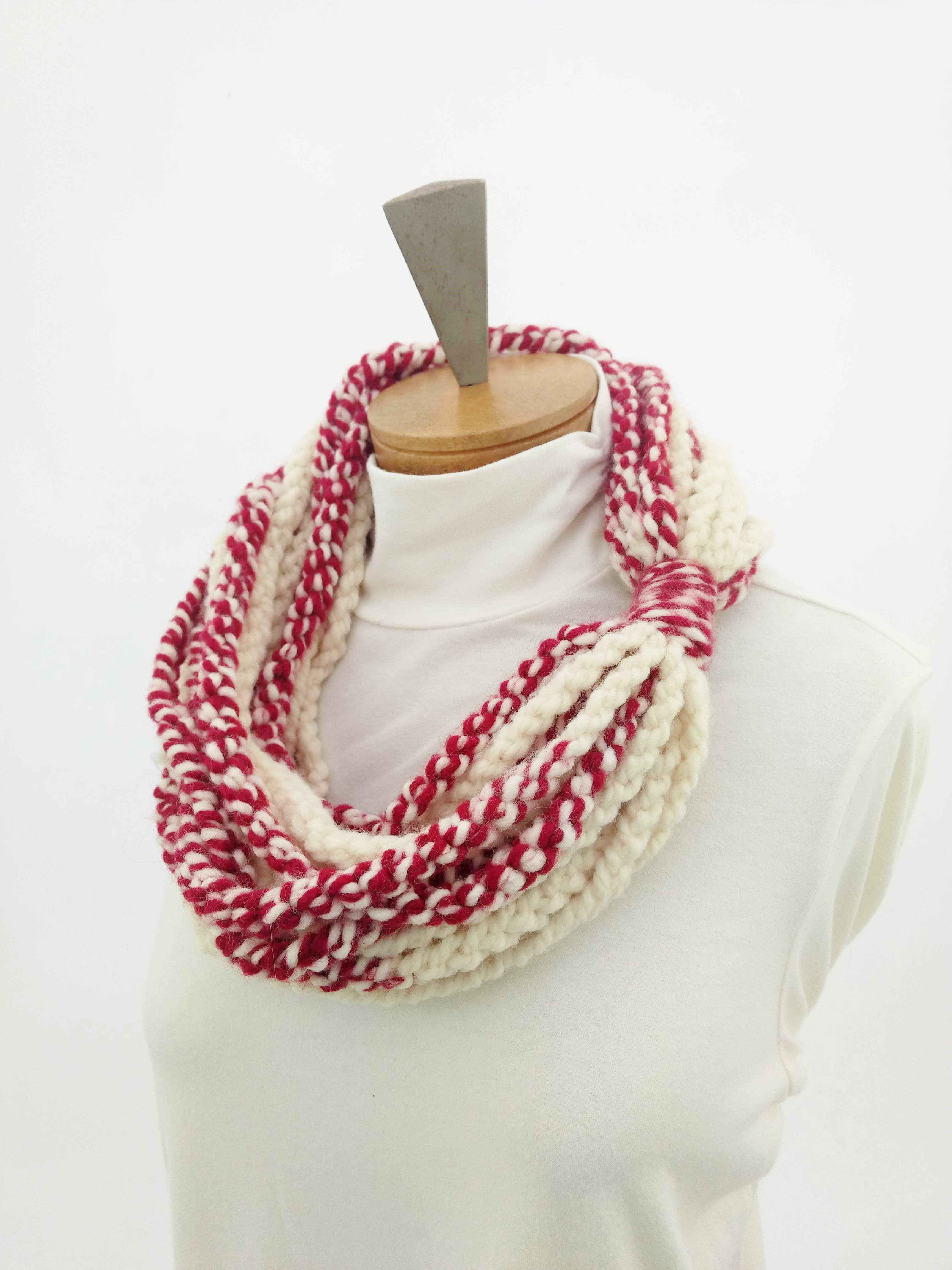 My scarves are handmade by me in my smoke-free, pet-free home studio. I finger crochet each one, rarely using a crochet hook. Each scarf is made of one long crochet chain creating a rope. I then create multiple loops by making a winding cuff of the same yarn around all the strands to hold them together. I keep each scarf a certain size with the help of a board that my husband, Ricky, made me so each one is measured appropriately before finishing. I have different size boards so I can choose how long or short to make each scarf. Each one takes three to four hours to make depending on how many strands of yarn I use, the texture of the yarn, and the size of each strand. What I love most about my scarves is that they can be worn indoors and out. They are the perfect weight to keep you warm with or without a coat. They add a unique look to any outfit. Most of my scarves are OOAK (One of a Kind), meaning you will not see another person wearing a replica.