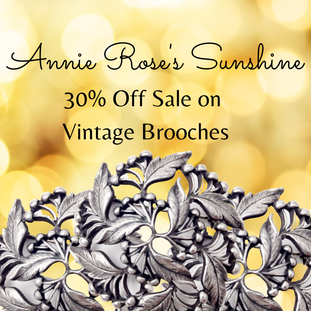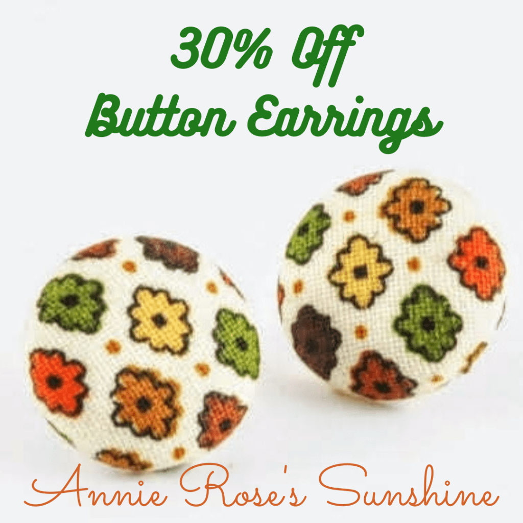I am currently running a 30% off sale on all infinity scarves, button earrings, and vintage brooches in my Annie Rose’s Sunshine Etsy Store now through November 15th, 2021.